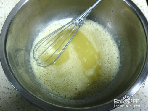 一点点的加入小麦粉,之所以说是适量,是因为你要把握好一个度,达到面糊的程度还要稀一点点就可以了。