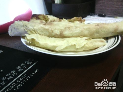 半个小时后预热电饼铛,不需要放油哦,用勺子舀一勺,让后快速推开成薄薄的圆形饼,直至一面成金黄色,再翻过另一面继续煎,到两面都是黄金色后迅速卷起。