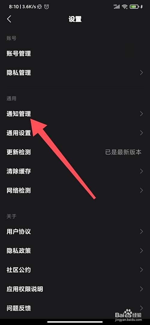 接着进入到设置页,我们找到通用——通知管理,点击打开;