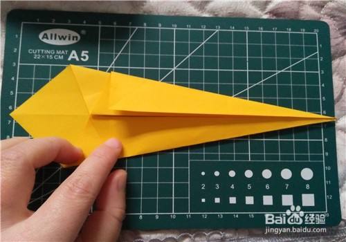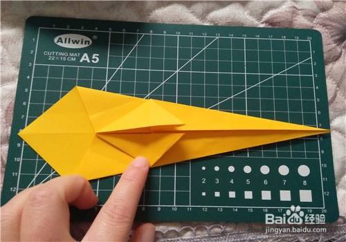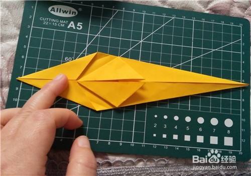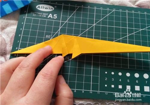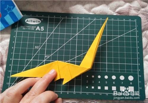 再把右侧的尖角向下折,再向里折,如图一。最后,我们给蛇颈龙画上眼睛和花纹就可以了。图三是完成图。