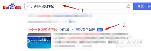 首先在百度输入“中小学教师资格考试”,然后找到官网进行点击。