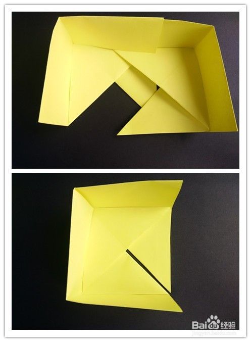按此法拼接好四个后,将最后一个同样插入,插入后调整使这部分形成一个更加规则的正方形,形成盒体。正面背面如图。