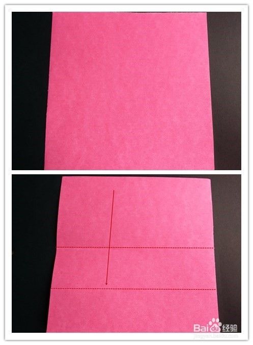 沿图示的左边虚线将纸往外折入,折好后上边往下翻,左边往右翻,右边往左翻,翻到正面,沿折痕将纸往内折入,上面往下翻,成为一个正方形。