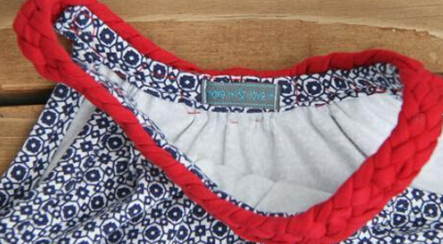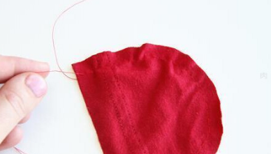 最后用红色T恤布编织一条辫子缝在领口处就可以了