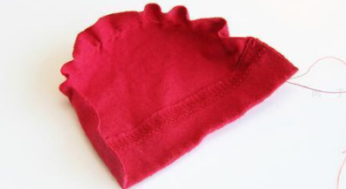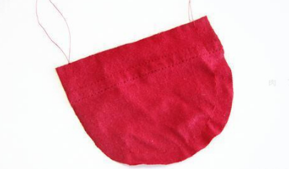用纸先剪一个拱形做模版,然后沿着这个模版裁剪2块红色的布。