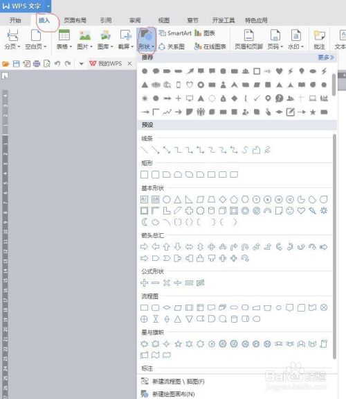 选择工具栏中的插入-形状
