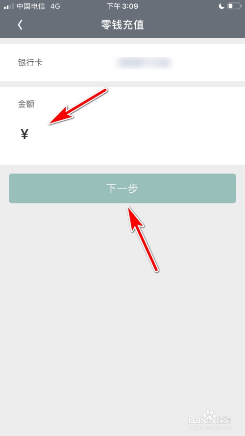输入充值金额后,点击下一步的选项即可充值零钱。