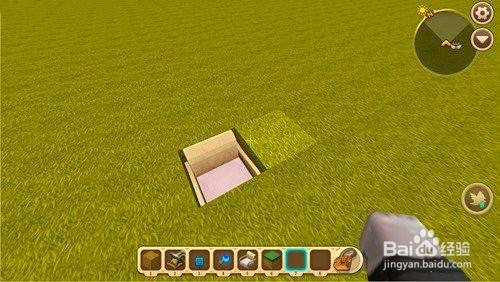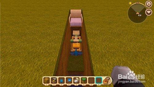 最后用草块填充上方的区域,只剩下沙发露在外面,这样坑人沙发就制作完成了。