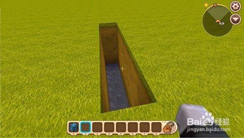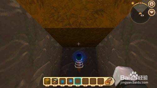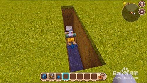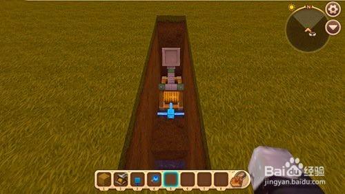 继续向下挖电能线旁的方格,并放置1个土块,在土块下放置一个电能产生器。