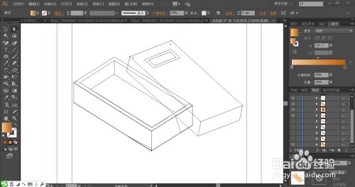 先用钢笔画出盒子的盖子与内部的结构路径,再把盒子的各个侧面的细节结构用路径一一呈现出来。