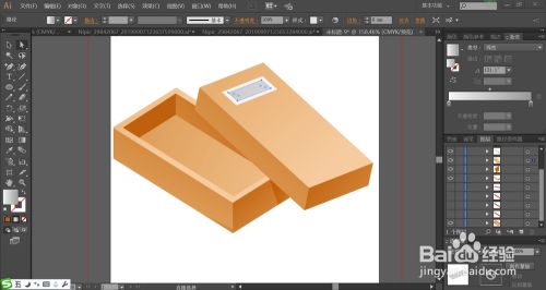 使用灰色渐变与灰黑色渐变搭配填充盒盖上面的标牌,再把盒盖在盒子上面的阴影用黄棕色的渐变填充,让其呈现暗光效果。
