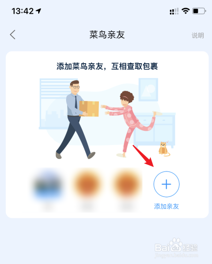 之后,点击添加亲友的图标,输入其他的手机号进行验证后,即可查询别人给自己发的快递信息。