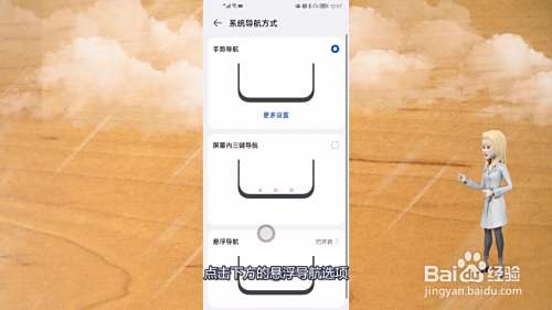 在这个页面选择系统导航方式,点击下方的悬浮导航选项。