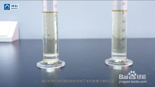 我们在两个按照相同比例添加了水和普通汽油的试管,分别加入神彩净醇乙醇汽油添加剂和市场上另一品牌的除水添加剂,经过实验人员摇匀静置5分钟后,加入神彩净醇的试管内,水已经完全溶入汽油,颜色通透没有杂质,而另一个试管内,水和汽油依然分层,颜色并发生变化,成了乳白色。
