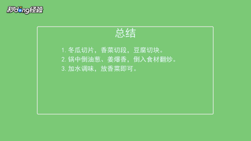 加水放入豆腐,冬瓜熟后放盐,香菜出锅即可。