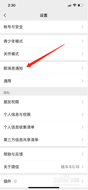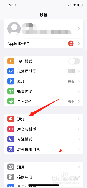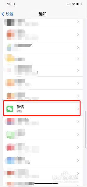 设置好微信通知按钮后,打开手机设置,点击通知。