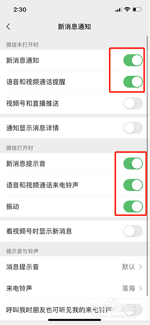 打开微信设置中新消息通知,打开新消息通知按钮,并打开设置中的微信通知,打开允许通知的按钮即可。