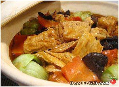 白豆腐、油豆腐、冻豆腐、豆腐皮、腐竹、香菇、木耳、金针菇、笋、胡萝卜、油菜。<br>
