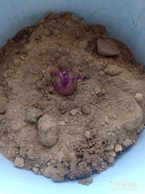 然后,把切下来的“红薯种子”,放到土壤中间最高的“位置”上。