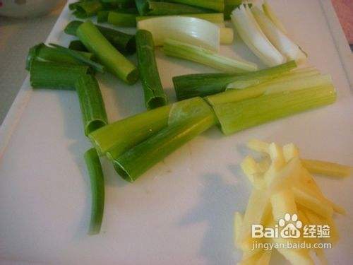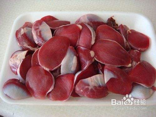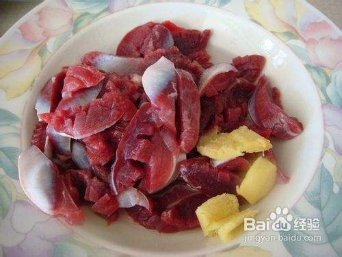 将鸭胗清洗干净然后切花状,用盐和姜,酒腌制片刻。