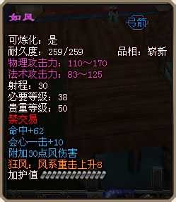 装备等级38级,适合8大门派使用,其中以物理系门派最适合装备