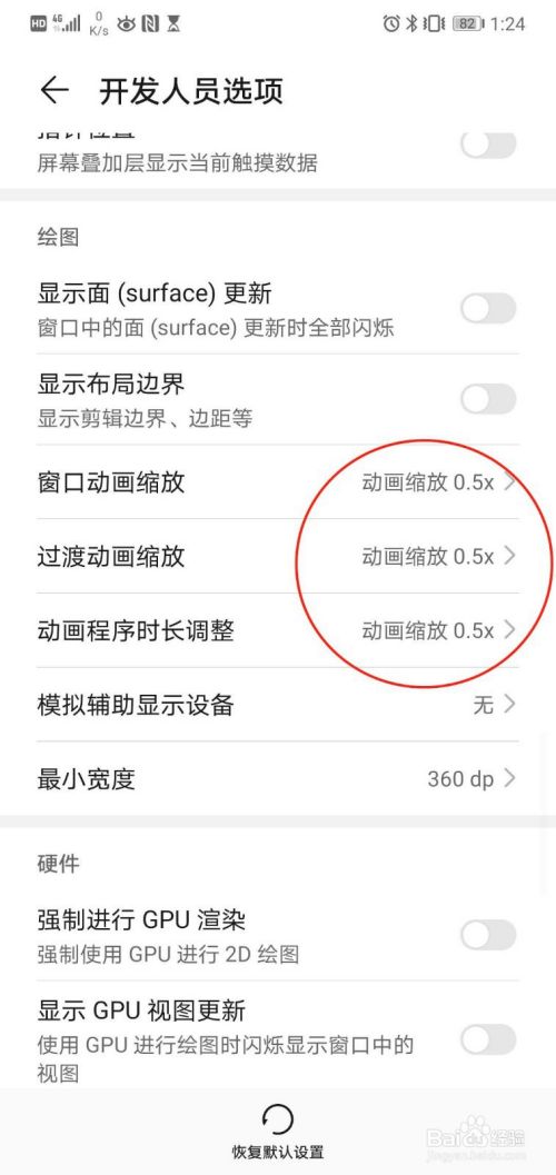 5.下拉找到动画缩放,全部调整为“动画缩放0.5x”。