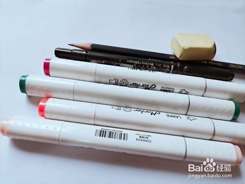准备好我们要用到的材料:一支铅笔、一块橡皮、一支勾线笔(含有粗细两头)、一些马克笔和一张白纸。