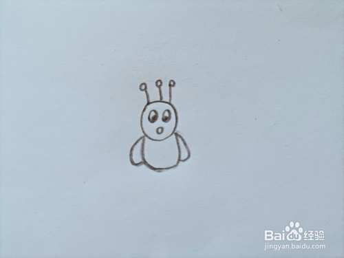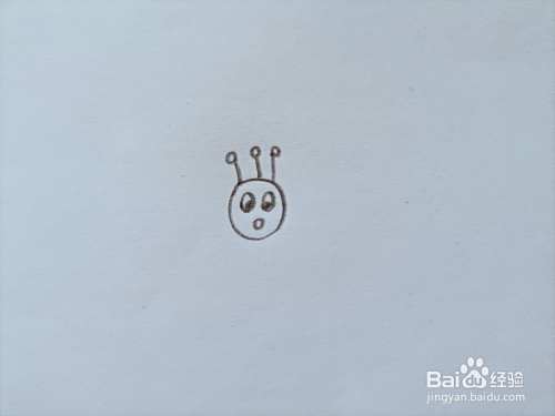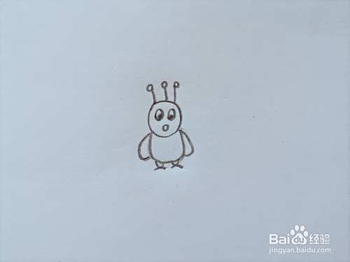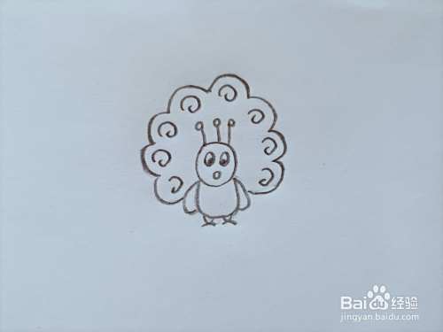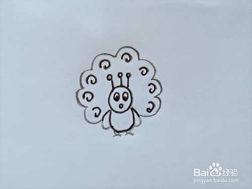 用铅笔画出孔雀的眼睛和嘴巴,如图所示。