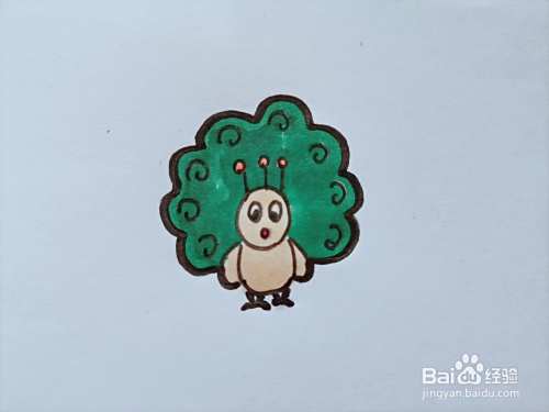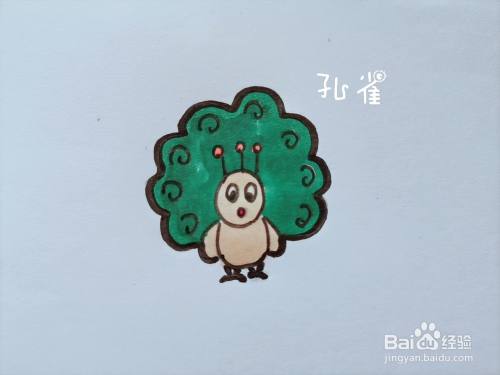 最后用马克笔涂上喜欢的颜色,孔雀画好了。