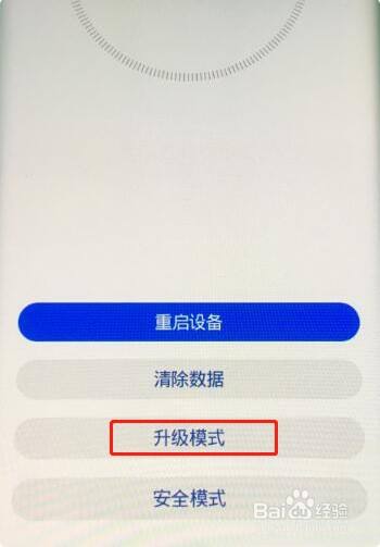 将手机接入充电器,持续按住电源键+音量上键,手机会自动重启,选择【升级模式】(Mate30pro没有音量键,在手机第一次振动后连续按五次电源键)