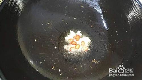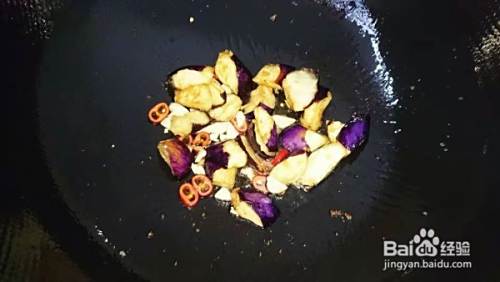 锅中留少许底油,把蒜头和辣椒煸香后,倒入茄子和鱼块一同翻炒几下。