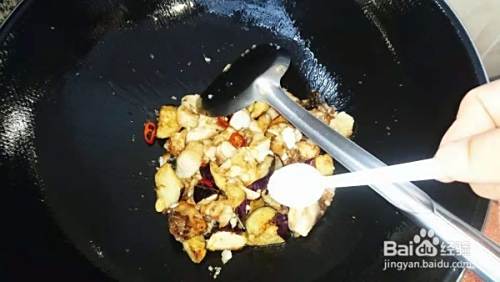 撒入盐和事先调好的料汁,翻炒均匀后便可出锅装盘。