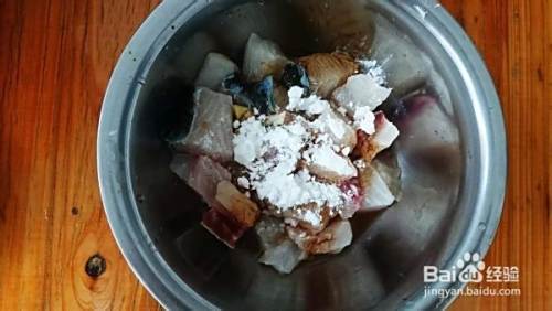 草鱼肉切大块,并放入姜,料酒,酱油和生粉抓匀后腌制15分钟。