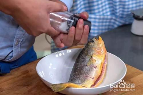 将盘子上撒上适量盐,然后将黄鱼放入盘中后在黄鱼身上撒适量盐。这样做静置一会儿,鱼身上就会渗出水分。之后一定要将这水擦干,这也是去腥味的关键步骤。
