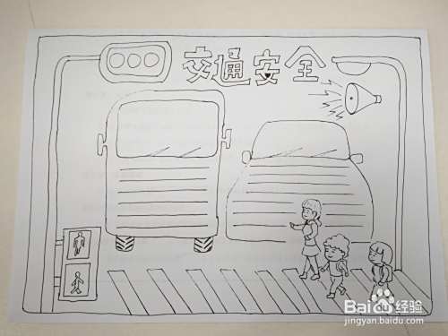 首先收集与交通安全相关的素材,然后构思手抄报的整体布局接下来绘制细节。