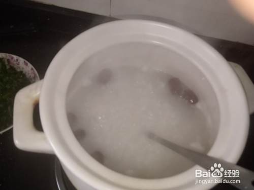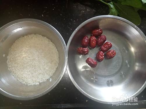 将粳米100g、红枣50g淘洗干净,放入锅中,加入适量水,熬煮成粥;