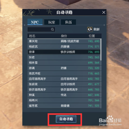 然后点开自动寻路,找到我们的训练师。(你是那个职业的就找那个)