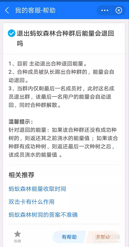 后阅读退出蚂蚁森林合种群后能量会退回吗全文,就能得到官方的解答,如图所示