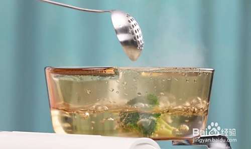 锅内倒入水,煮沸,放入西兰花,焯水 2 分钟,捞出
