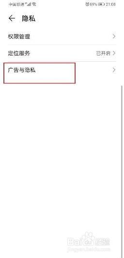 进去隐私之后,点击广告与隐私。