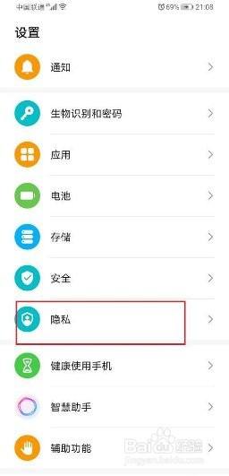 打开手机,点击设置中的隐私。