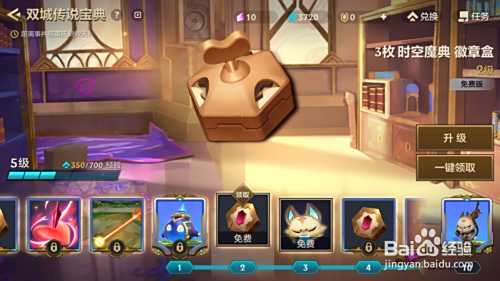 升级双城传说宝典,点击一键领取,可以获得多种道具奖励。