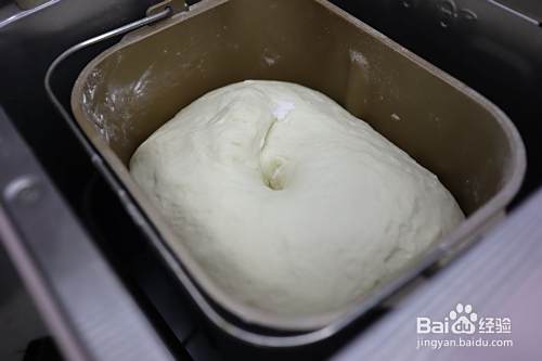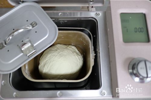 将所有材料称重后倒入面包桶中,再把面包桶安放在面包机内,启动一个“揉面”程序10分钟,面团收圆,盖上内盖和外盖,自然发酵1小时左右,在室温低的情况下,可以有面包机自带的发酵程序来发面;没有面包机等工具可直接用手揉成团即可,再用湿布或者密封性好的盖子盖严。