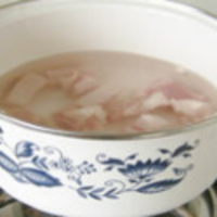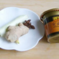 锅里放油,下八角煸香后倒入五花肉、葱、姜,煸炒至肉色变白加料酒多点。