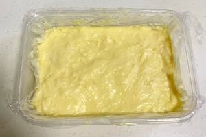 倒入铺有保鲜膜的盒内,入冰箱冷藏3小时。