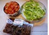 番茄切成丁,甘蓝切丝。超市买的成品炸里脊
