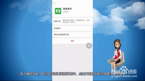进入辅助功能,即可在页面看到群发助手,点击开始群发即可按提示操作使用。