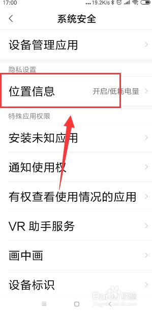 如图所示,在系统安全代付界面找到【位置信息】选项,点击打开。