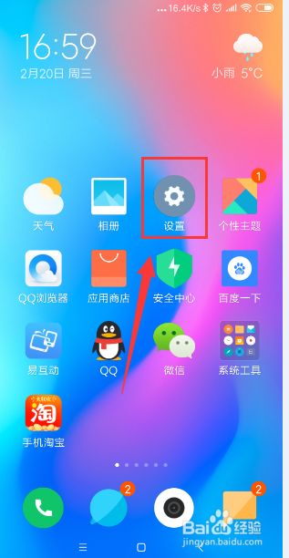 如图所示,在自己的手机桌面上找到设置图标,点击打开。