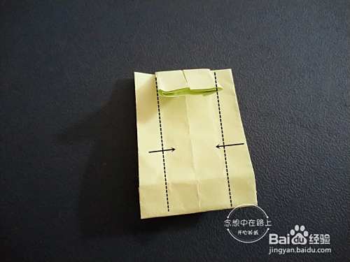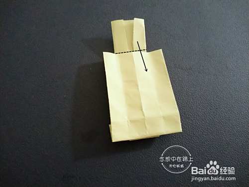 如图:沿着虚线对折,口袋打开。